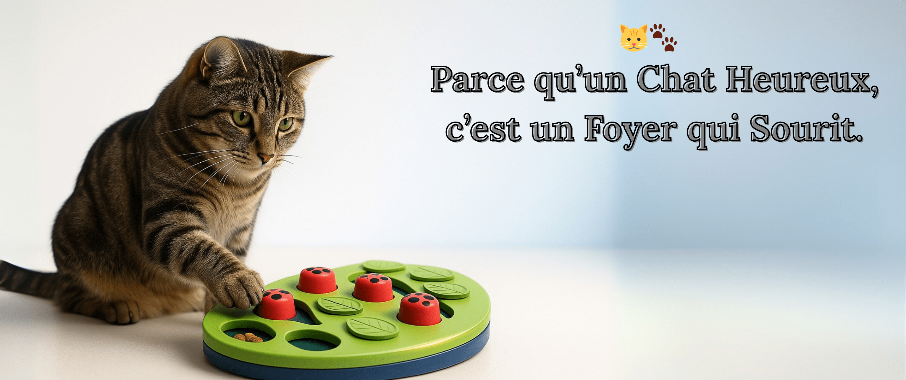 Avant : un chat qui s’ennuie, griffe par frustration et engloutit sa gamelle.