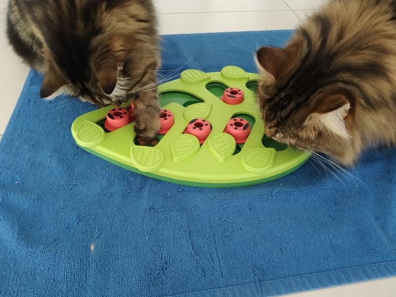 Simba se lassait vite de tous ses jouets… mais là c’est différent ! On sent qu’il est stimulé mentalement et physiquement, c’est génial. Je peux plus le laisser un jour sans ce jouet !