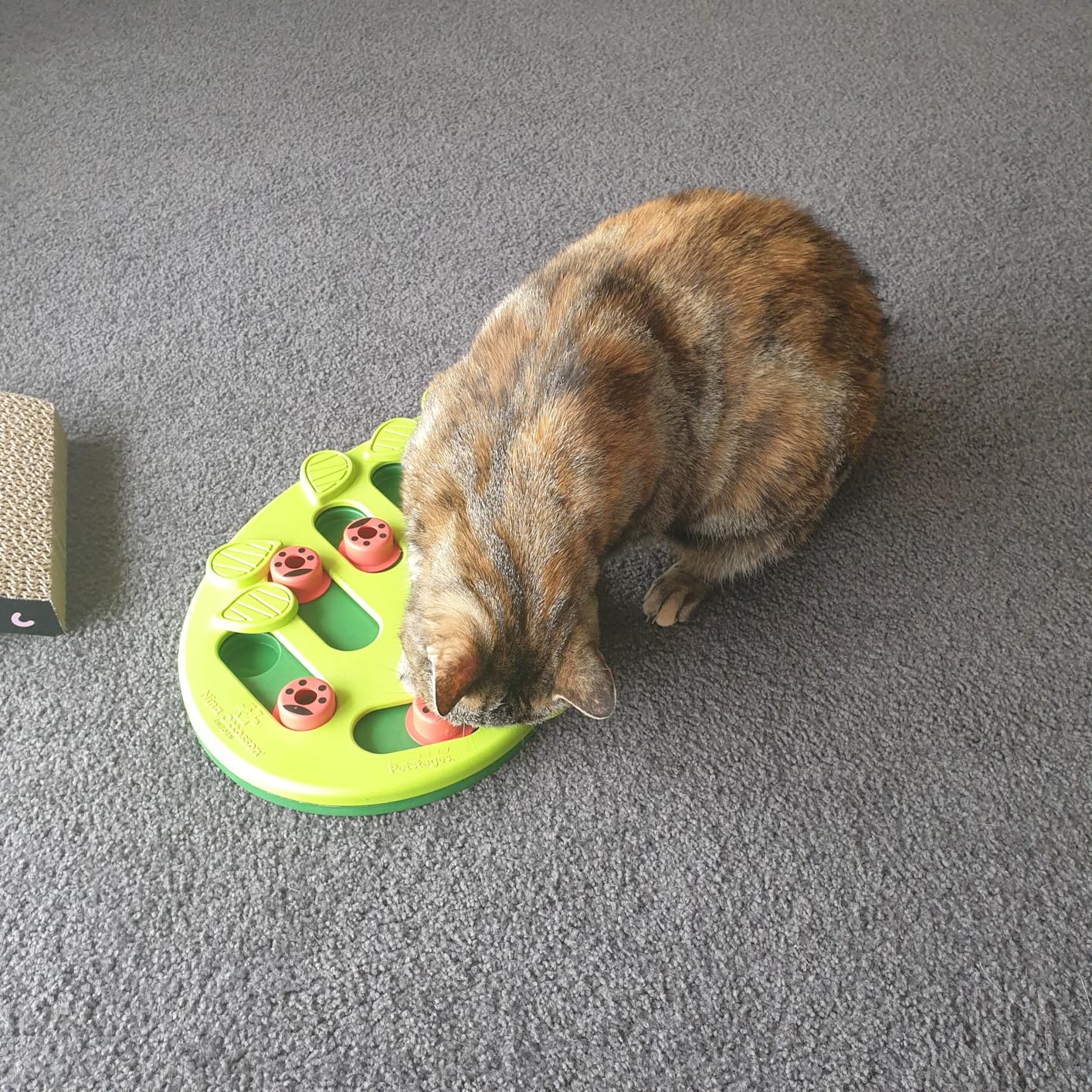 Cookie avait pris un peu de poids… Avec ce jouet, il bouge tellement plus que je vois déjà une différence. C’est top pour sa santé et le voir s’éclater avec ce jouet est devenu un rituel.